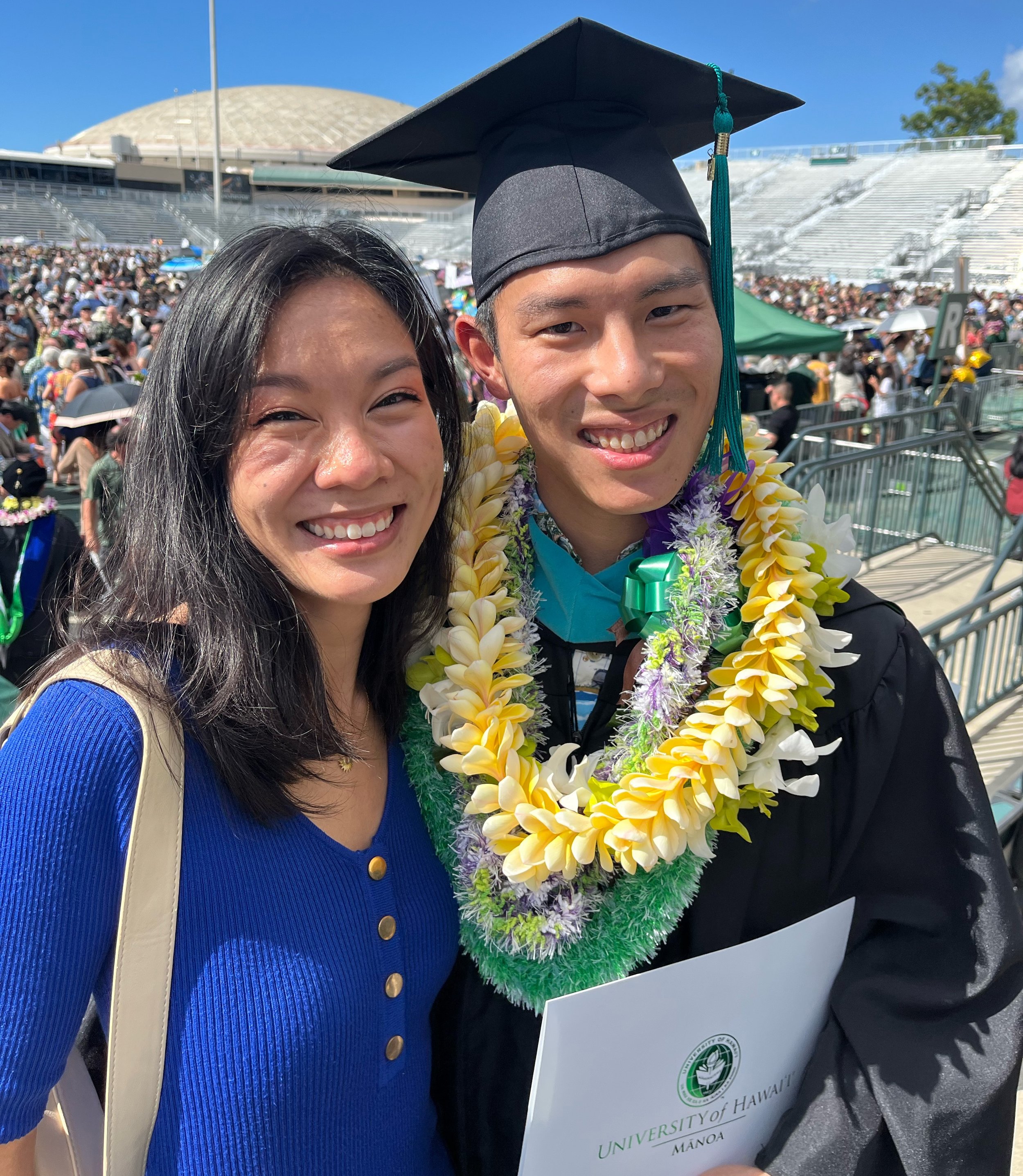 Jackson with his fiancé, Agnes, at his graduation ceremony.